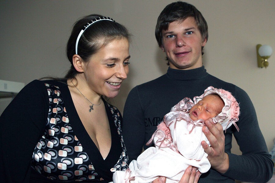 Футболист Андрей Аршавин с женой Юлией и дочерью Яной, 14 апреля 2008 года