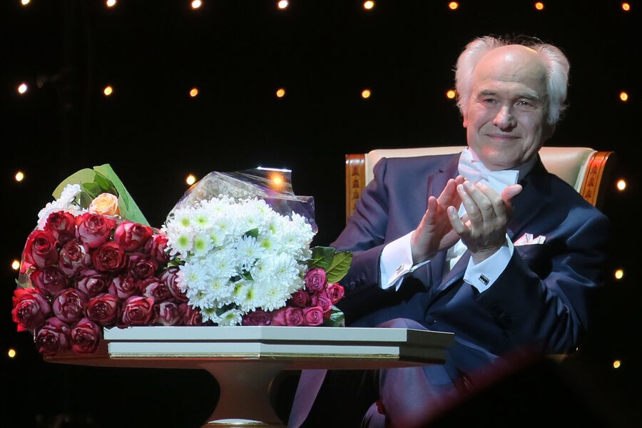 Евгений Дога во время юбилейного вечера в Государственном Кремлевском дворце, 2017 год